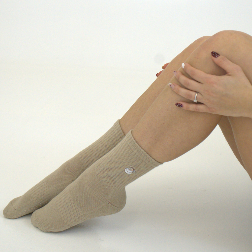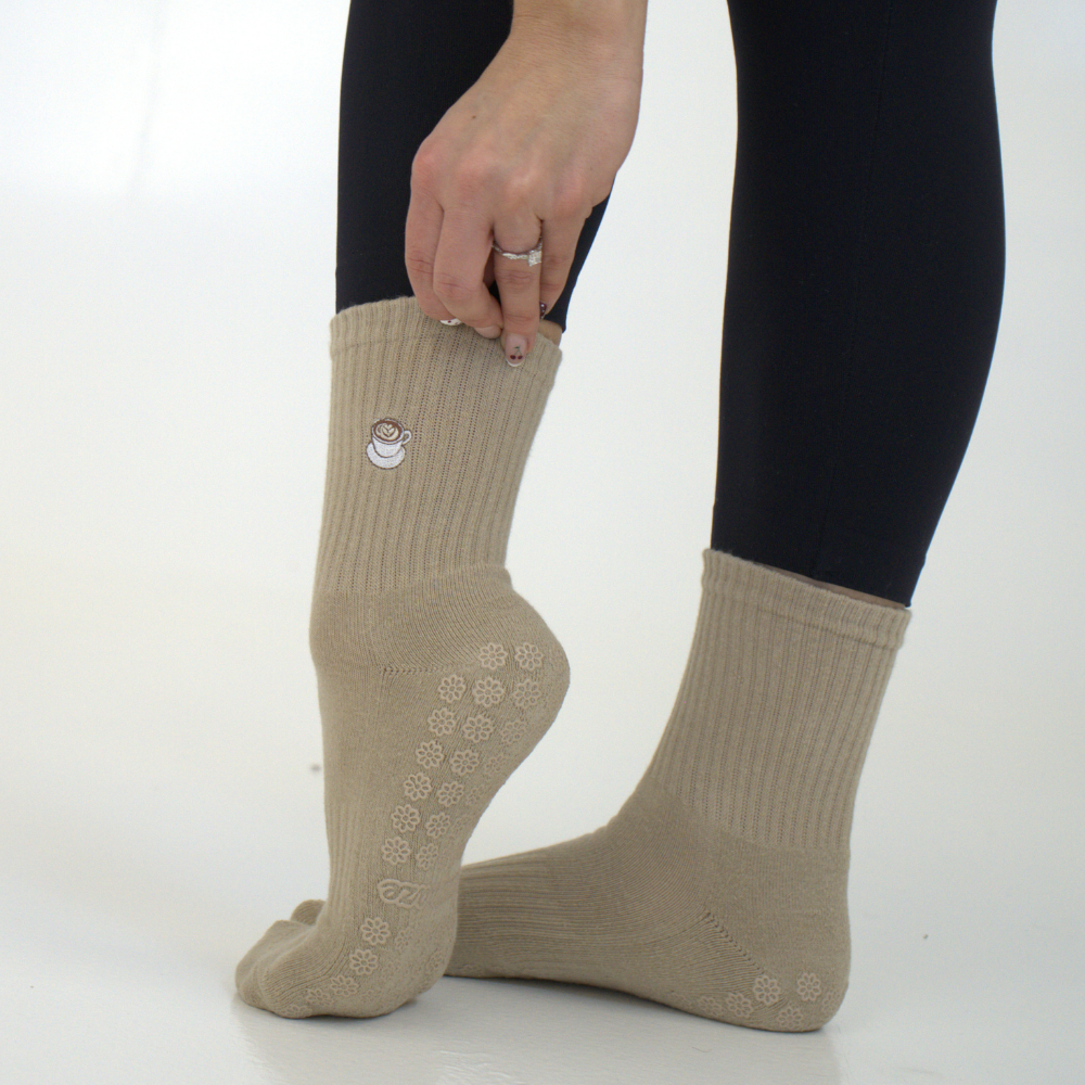 Start your day with a little caffeine and a lot of comfort. Latte Grip blends a cosy beige tone with a tiny coffee cup embroidery, grounding you in style from mat to coffee shop.